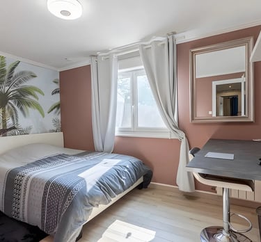 Profitez d'un repos total dans notre gite de La Ferrière. Nous mettons à votre disposition 3 chambres confortables à la décoration soignée, idéales pour vos déplacements professionnels près de La Roche-sur-Yon ou vous séjours en famille. Chaque espace à été pensé pour allier calme et modernité, vous garantissant une expérience de standing à proximité immédiate du Puy du Fou.